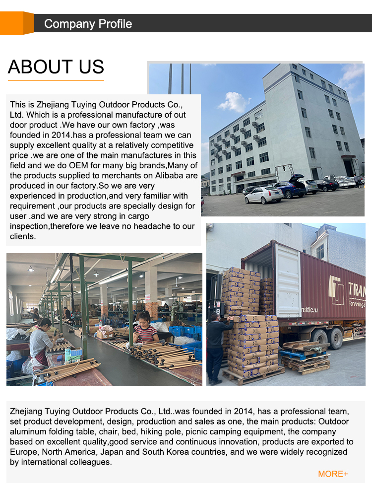 Zhejiang Tuying Outdoor Products Co.,Ltd.We have our own factory ,was founded in 2014.has a professional team we can supply excellent quality at a relatively competitive price .we are one of the main manufactures in this field and we do OEM for big brands