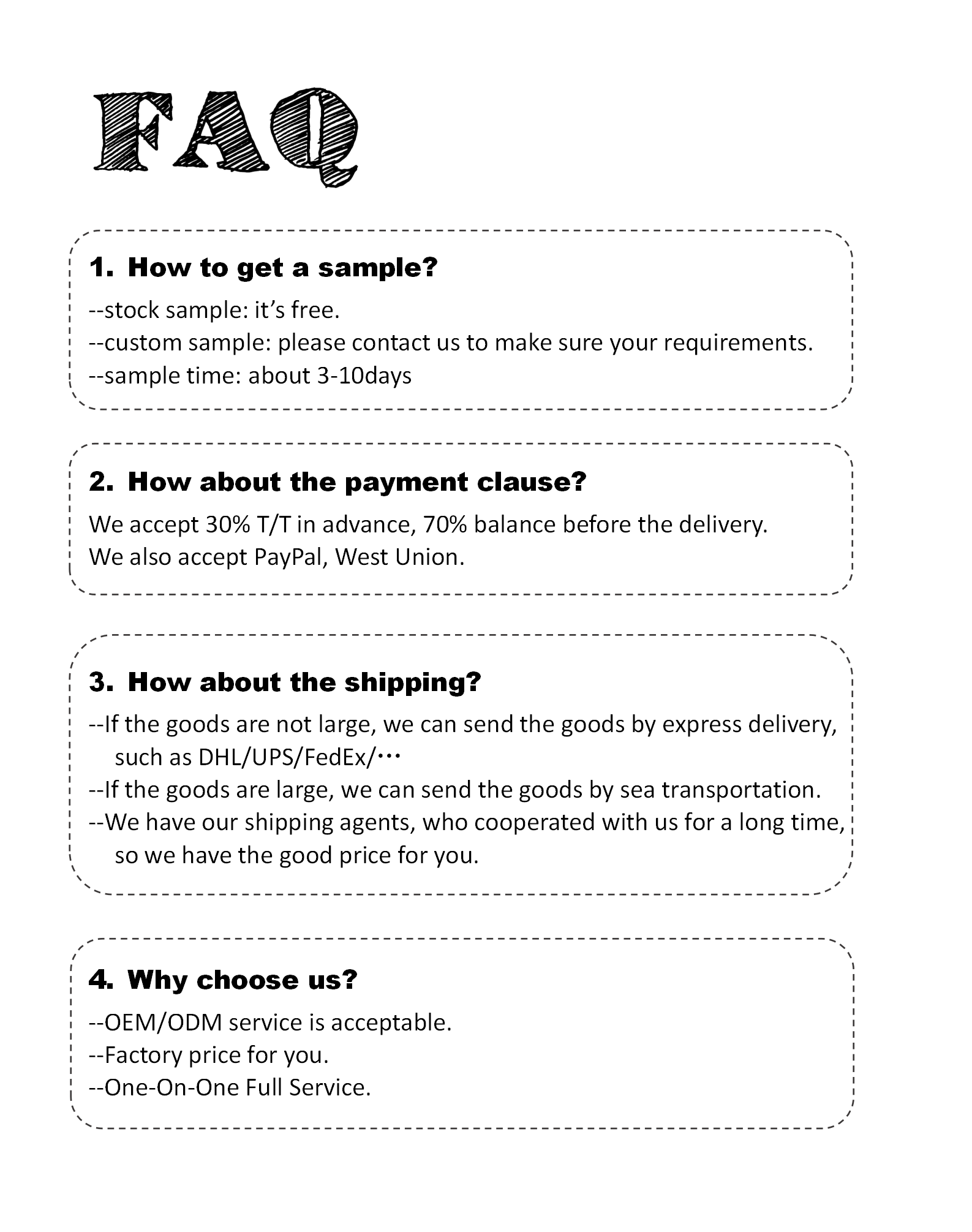 Our OEM/ODM service: we suppport all kinds of customization, such as color custom,logo custom, package custom,size custom, shape custom,material custom, and so on. Our vertically integrated supply chain provides you with the confidence that your manufacturing is held to the higheststandards, ensuring that your products are safe and in compliance.