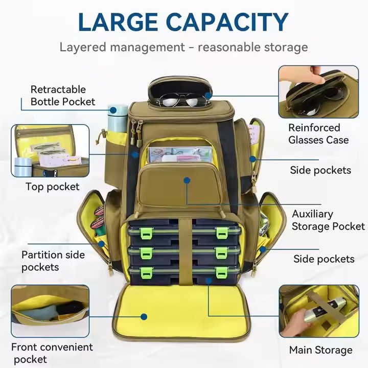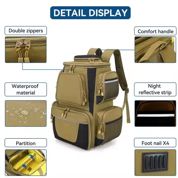 Factory OEM Water-Resistant Fishing Rod Backpack Men Sling Chest Fishing Bag Fishing Tackle Backpack with Rod and Gear Holder